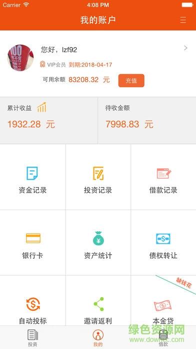 3、用户无需充值提现,资金同程进出银联负责,实现懒人投资