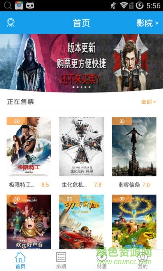 u票票软件是一款非常好用的手机买电影票app,可以在手机上查看最新的排片信息,支持在线选座购票,支持多种支付方式,欢迎喜爱的朋友到绿色资源网下载使用!