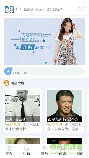 吾约APP是一款集明星时间交易、明星同款商品、影视道具抢购、票务系统、项目专区等功能为一体的综合性服务平台,这里汇集了影视明星、体育明星、网红等重量级大咖,您可以投资心仪的明星,让他的时间为您创造更高的价值。