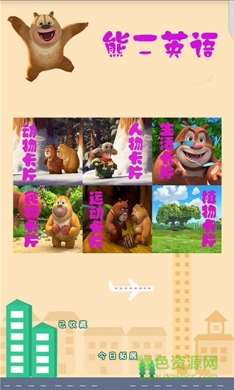 熊二学英语安卓版是一款非常好用的儿童英语早教app,以卡片加单词加汉语翻译的形式来传授简单常见的英语单词,支持收藏生词,欢迎大家到绿色资源网下载体验!