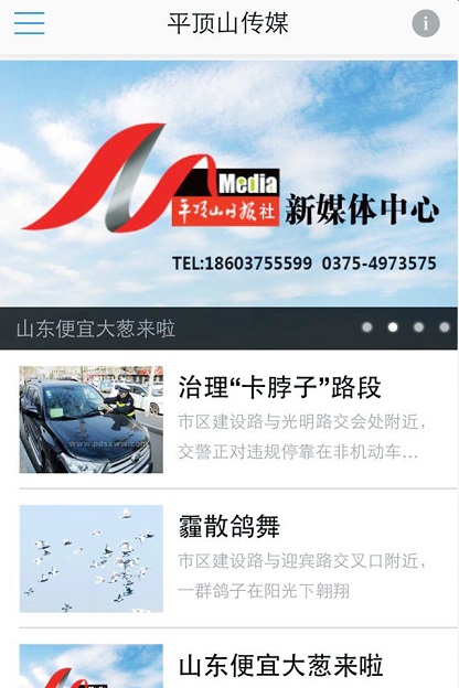 平顶山传媒手机客户端是平顶山日报社继平顶山新闻网、平顶山手机报、平顶山微报及掌上鹰城后重点打造的手机阅读平台。该手机终端依托主流媒体的辐射力,及时将平顶山本地新闻、国际国内新闻资讯、鹰城网事论坛热点等,以图文并茂的形式通过手机传送给读者,形成了新媒体与传统媒体并驾齐驱的局面。平顶山传媒手机客户端在扩大平顶山日报社新闻资讯覆盖的同时,带给读者更便捷的阅读方式,也开启了一扇让外界了解平顶山的数字窗口。