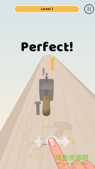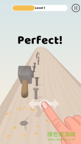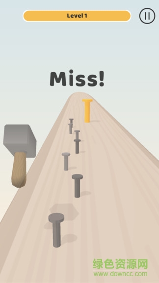 画面清新,简单明了,操作简单。玩家需要控制锤子把钉子敲下来。