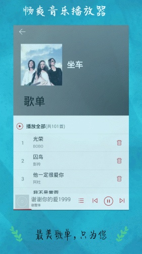2、播放支持多种音乐格式,包括mp3,wav和wma格式等。