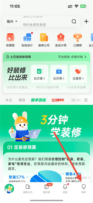 1、打开土巴兔APP后,在界面底部找到我的选项并点击,进入个人界面。