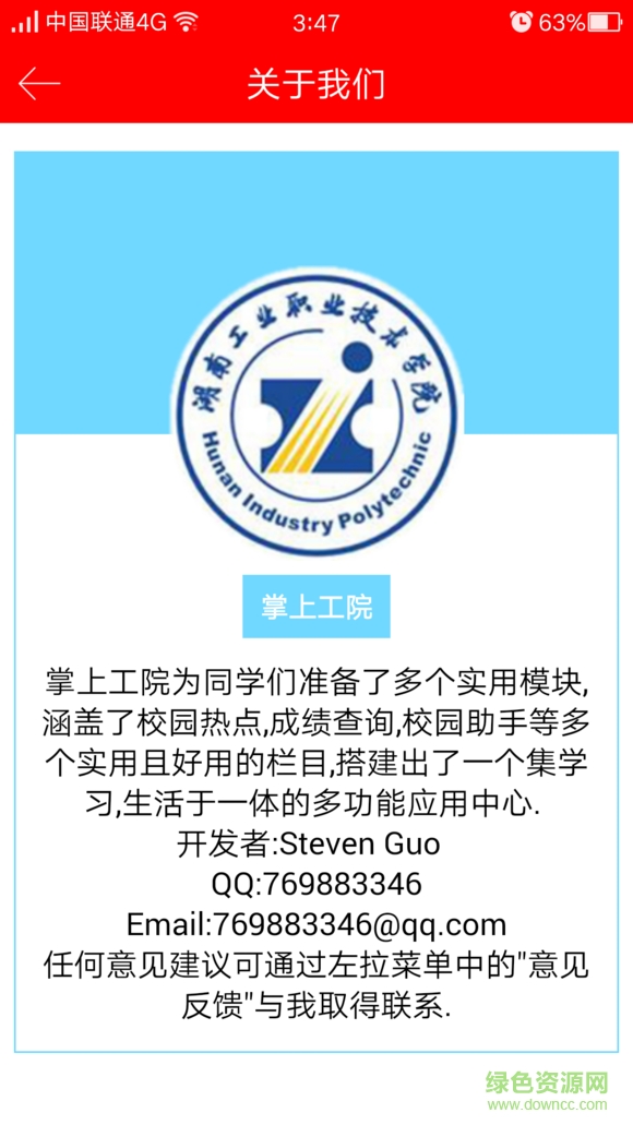 这是工院在校学生自主开发的第一款应用,这里有课堂学绿色资源网不到的知识,有想做却从未体验的经历分享“掌上工院”让我的大学生活充满激情活力!