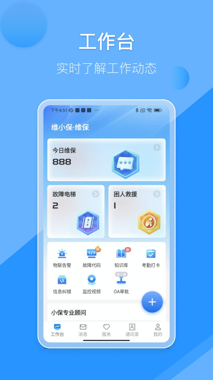 维小保维保软件是一款非常好用的维修服务手机app,此版本主要供维保人员使用,可以在手机上查看最新的维保、维修和救援信息并及时处理,欢迎大家下载使用!