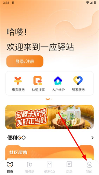 1、进入一应驿站app首页,点击底部导航栏最右侧的我的选项。