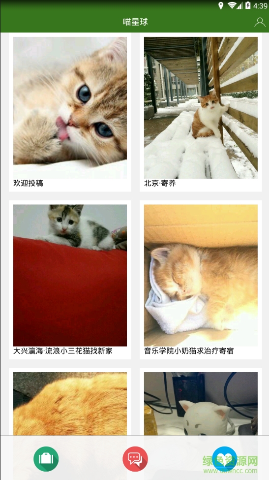 喵星球app是一款专门为流浪猫打造的服务平台,如果你也有爱猫情节,在外看到流浪猫了却不知道该如何处理,来喵星球app发布流浪猫的信息,我们会帮助那些流浪猫找到一个新的家!欢迎来绿色资源网下载!