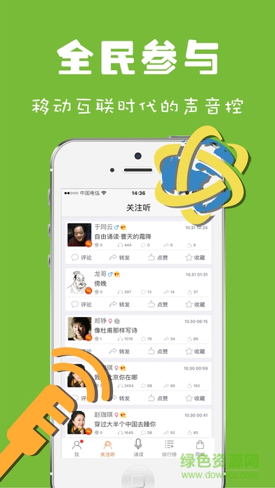 自由诵读app是一款非常便捷的手机朗诵软件,又叫为你诵读,这里汇集了丰富的诗歌资源,用户可以在这里自己自由的进行录制,还可以赚钱哦,喜爱的朋友赶快到绿色资源网下载体验吧!