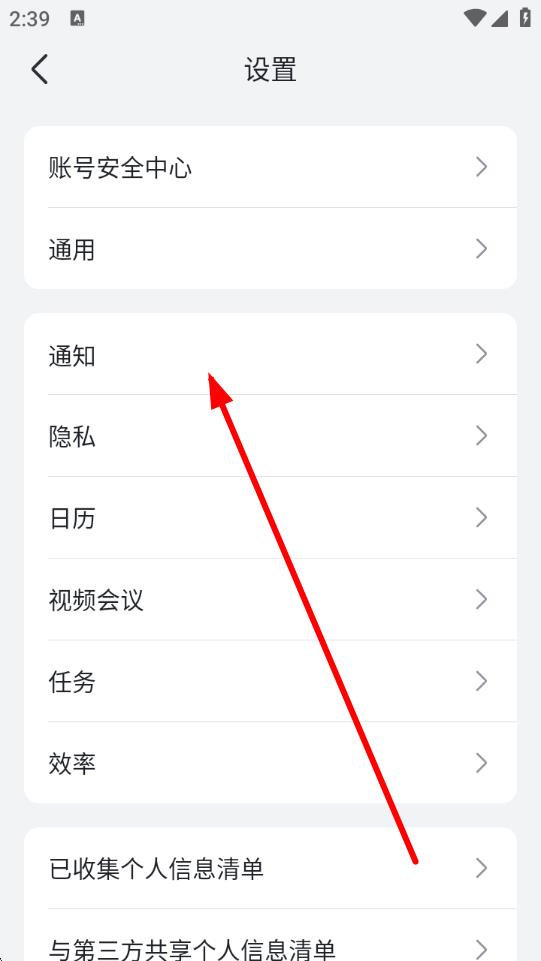 2、进入设置页面后,点击通知进入通知相关设置界面。