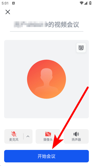 3、在视频会议准备页面,点击开始会议按钮,即可发起视频会议。