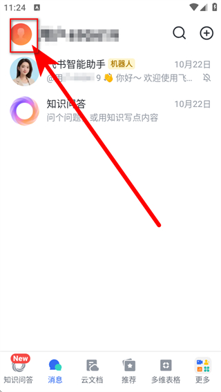1、打开飞书APP,我们需要点击左上角的头像,弹出侧边栏。