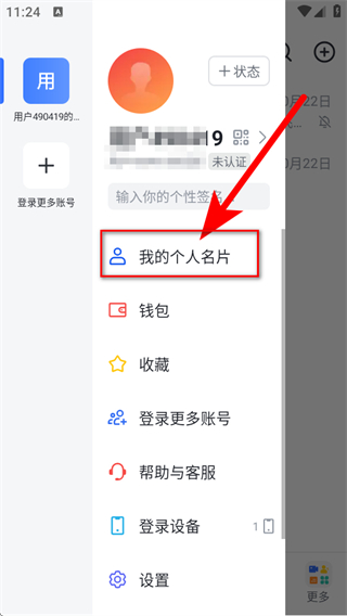 2、在侧边栏中,点击我的个人名片,进入个人名片的页面。
