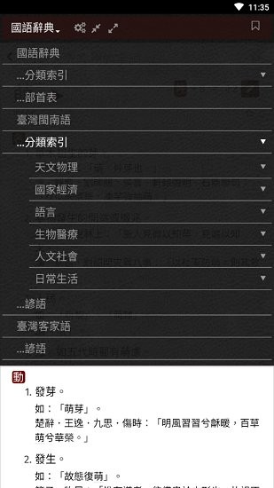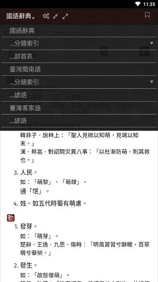 2、超过19万条目,可离线使用的繁体字辞典,支持台语、闽南语、客家语。