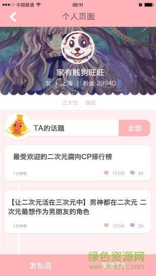 二次元的小伙伴们!在这里可以秀出你的二次元生活,晒出你的宅、基、腐、燃、萌的属性,还能结交大票同好,宅路漫漫拒绝孤单!在这里可以找到身为动漫粉、游戏宅、模型党、手办控、COSER或lo娘的你感兴趣的内容和新鲜的信息,一手猛料爆不停!