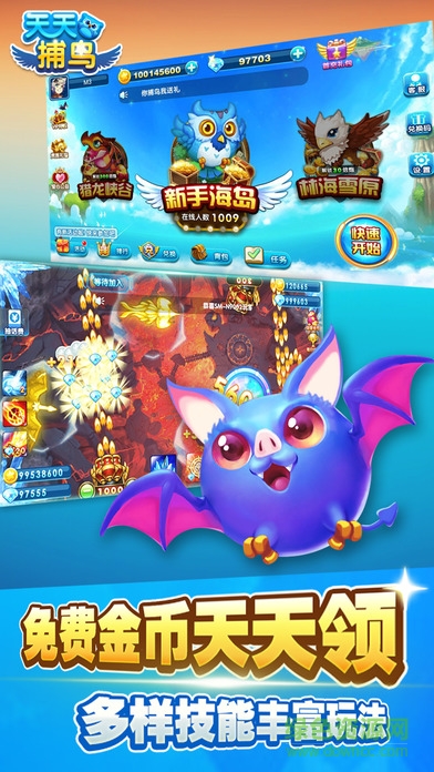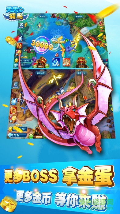 天天捕鸟是同聚游戏历时半年研发的街机捕鸟游戏,多样技能,丰富玩法,更有神秘龙BOSS等你来捕获,边玩游戏边做公益,联合《鸟网》你玩游戏我出钱,邀请玩家线下放生鸟类,超多趣味内容可供玩家体验。