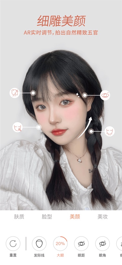视频磨皮算什么美颜,要的是硬币眼、细高鼻、巴掌脸!十大实时动态美颜功能,细致调整五官,边拍边美,给你照镜子般的惊艳体验。