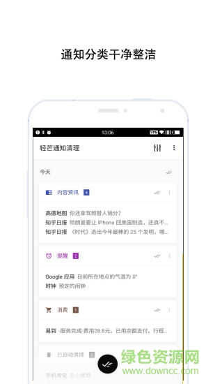 轻芒通知清理是一款能准确对通知进行分类、并自动清理非重要通知的应用。把所有不重要的通知全部自动收起来,让你的通知栏只留有用通知,更清爽有用。