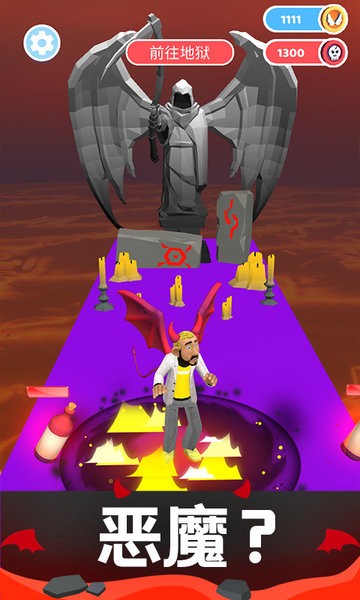动作跑酷玩法手游。玩家在天使恶魔跑酷游戏中可以选择自己的命运,在每一个关卡中通过收集各种道具提升自己的天使或恶魔属性。