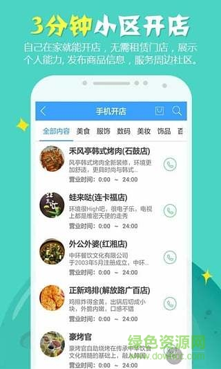 4.三分钟小区开店:自己在家就能开店,无需租赁门店,展示个人能力,发布商品信息,服务周边社区