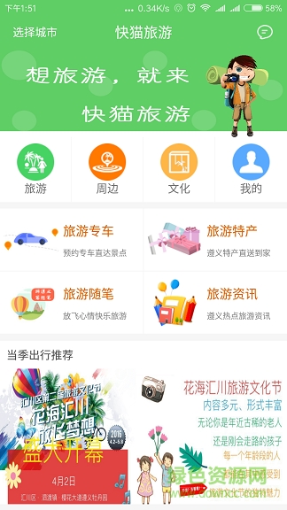 快猫旅游app是旅游出行软件,想要出去玩,快猫在手,超好用的旅游app,包含了旅游景点,旅游超市,线路预订,旅游攻略等,还有机票火车票门票预订哦,简单操作,随时了解关于旅行的所有,轻松去旅游!