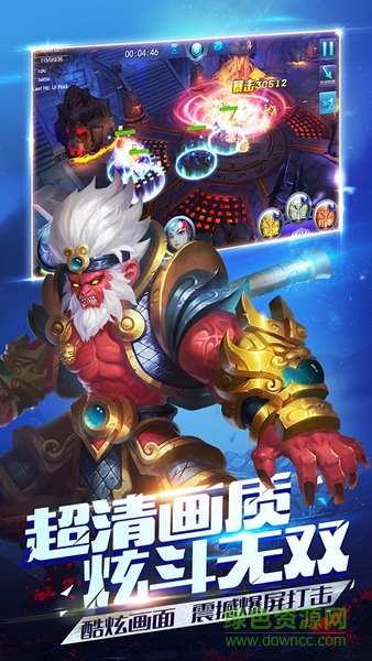 --数百英雄招募 共斗精英BOSS原班港漫《大圣王》角色悉数登场,数百神魔英雄等你召唤集结,将众英雄收入麾下。历经八十一难,策斗BOSS,挑战上古妖魔。巧妙阵容搭配,轻松简单指尖操作,用智慧与力量掌控战局!