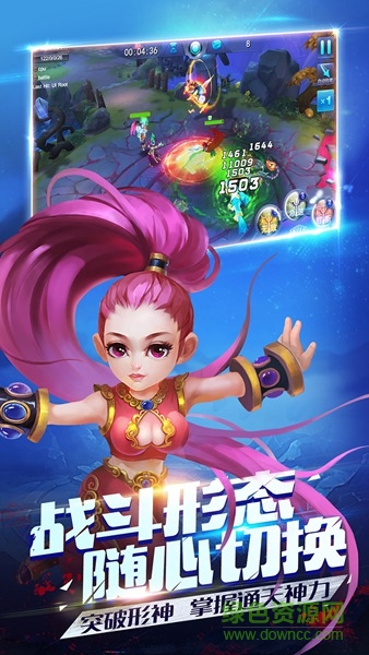 --战场buff加持 形态随意切换各色魔元元素使用,让团队获得多种buff加成,体验多样化战斗;主角“七变”变身,操控的大圣四种形态,棍、钩、弓、盾策略切换,灵活自如、随机应变。更兼魔元养成、主角变身养成,培养趣味和耐玩度兼具。