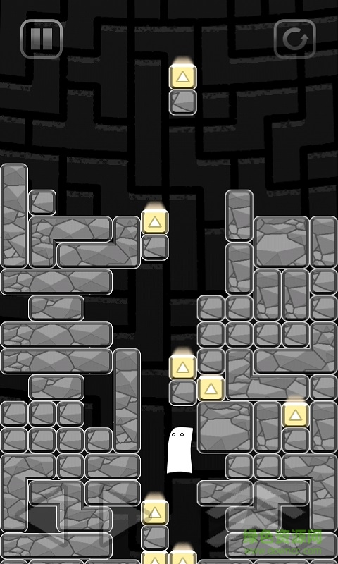 4、帮助白色小生物从地底不断向上攀升,看看外面充满光的世界,我们可以在游戏中操作一只奇怪的白色谜之生物来跳跃,从黑暗的世界中崛起并且飞出!