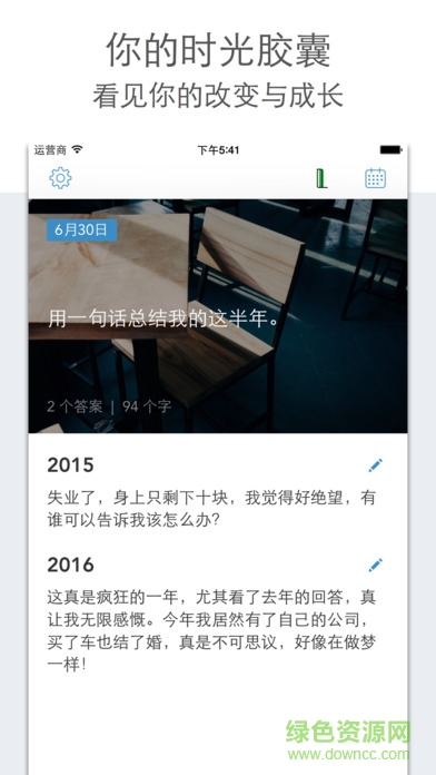loop journal安卓版是一款非常好用的手机记日记app,软件界面非常简洁清新,支持在日记中配图,隐秘性强,充分保障个人隐私,欢迎有需要的朋友到绿色资源网下载体验!