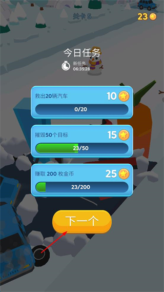 4、完成当前关卡后,查看今日任务进度,点击下一个按钮进入后续操作环节。