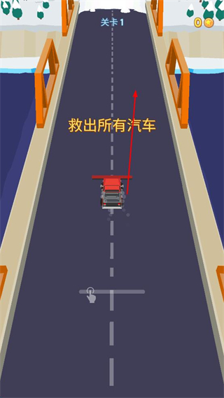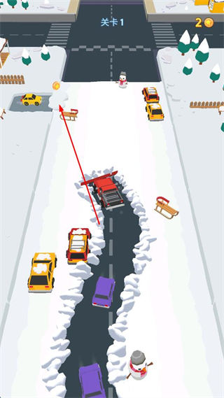 2、操控红色清理车辆沿道路行进,按照提示救出道路上被积雪围困的所有汽车。