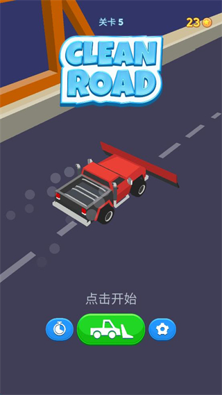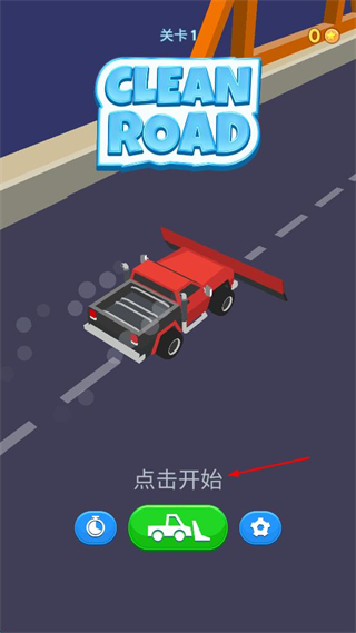 1、进入CLEAN ROAD关卡1界面,点击下方的点击开始按钮,启动道路清理任务。