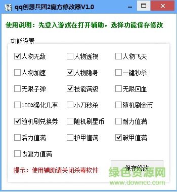 创想兵团2魔方修改器是为qq游戏创想兵团2推出的一款全能辅助软件,提供透视、加速、满级、无线自导回血、秒杀等功能,让你玩游戏更加尽兴,不担心时间的损耗,需要的朋友请来绿色资源网下载吧!