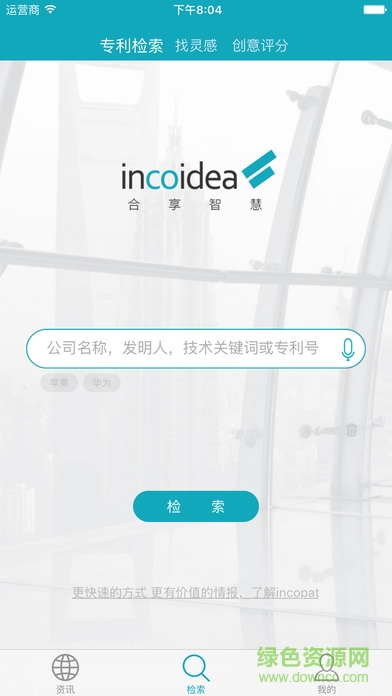 合享智慧APP是一款基于专利大数据和移动互联网的应用软件,集专利信息查询和创意灵感分享于一体,用户可以通过使用移动设备,随时查询和参考全球范围内的创新情报信息,用户还能上传自己的创意灵感,获得系统提供的基于专利信息的原创性评价,然后将创意和评价分享到社交网络中。激发创新活力、助力创意传播!