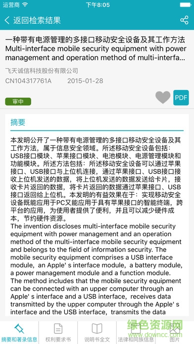 2.专利检索查询:用户可以通过输入词组或一段话,进行专利检索,并查看专利的技术、法律和商业信息。软件基于北京合享新创公司全面优质的专利数据资源,涵盖了全世界102个国家/组织/地区1亿余件专利信息,并且还具有用中文检索英文专利的功能。
