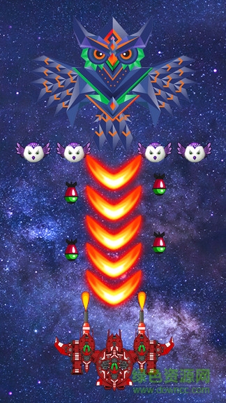 邪恶的异形猫头鹰控制着银河,你的工作就是消灭它们,为银河带来和平与稳定。消灭猫头鹰可以获得升级道具,以增加你的火力并增加你获胜的机会。