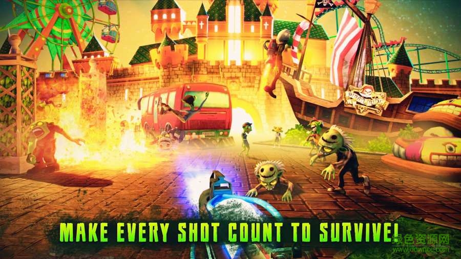 3、游戏采用了卡通风格的画面设计,游戏里所有的僵尸都不再是一身腐肉,反而全身皮肤都是绿色的,与其说他们是僵尸,不如叫他们外星人似乎更加贴切一些。
