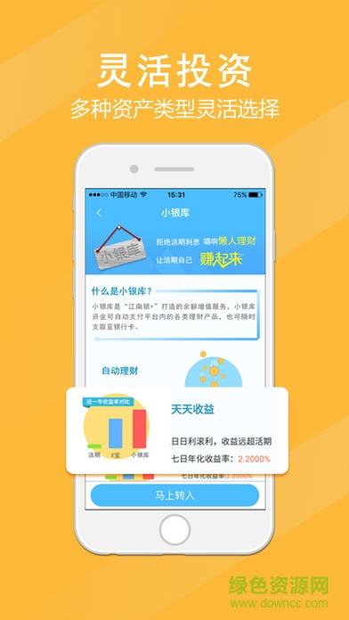 江南Bank苹果版是一款提供银行理财服务的软件,用户通过这个平台可以更方便快捷的理财,而且比其他理财软件更安全,更有保障。而且银行提供的理财产品更多,用户的选择也就更多,有需要的朋友可以来绿色资源网下载体验。