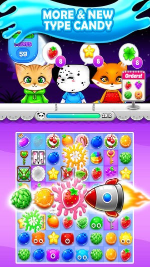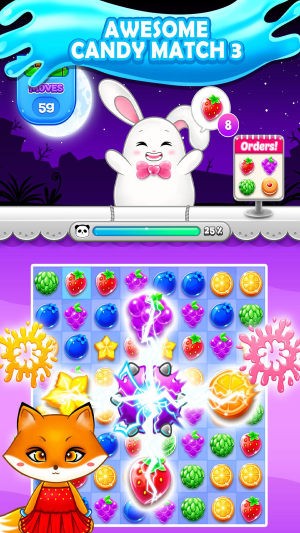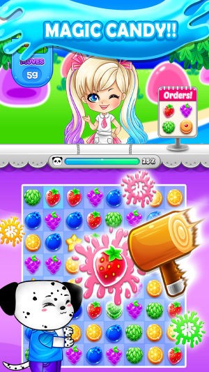 糖果甜果爆炸一次性消除一定数量的方块,会生成特效方块!各式各样的特效方块不仅拥有绚丽的特效,也会使您在游戏过关变得更加简单有意思;