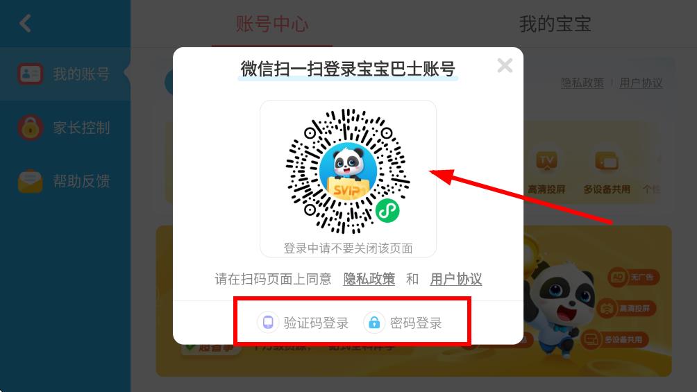 4、选择登录方式,按所选方式完成登录操作,即可登录宝宝家园清洁app的账号。