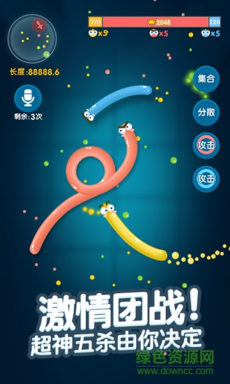 蛇蛇大战官方版是腾讯全新贪吃蛇玩法设计的休闲益智游戏,游戏中队贪吃蛇形象进行了全面升级,带你体验不一样的冒险过程,多人组队开战,全面对战敌人,成为最强贪食蛇!