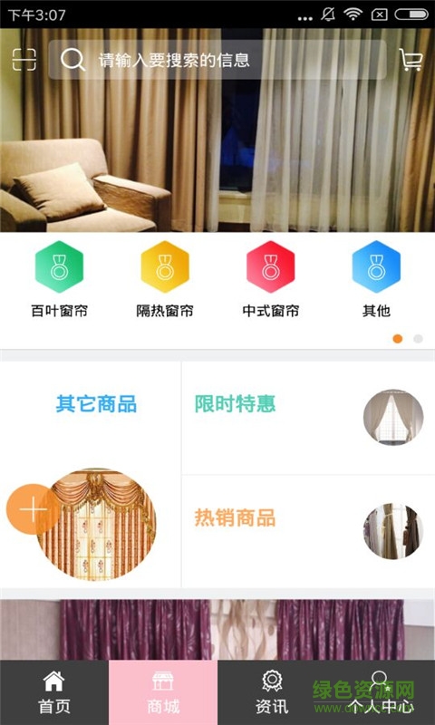 四川窗帘app是一款购物app,这款网络购物软件主打商品是窗帘,是一个专业的窗帘购物网站,在四川窗帘app上你能买到自己喜欢的款式、花色。爱家的您,赶紧为您的家选择一款合适的窗帘吧。有需要的朋友可以来绿色资源网下载。