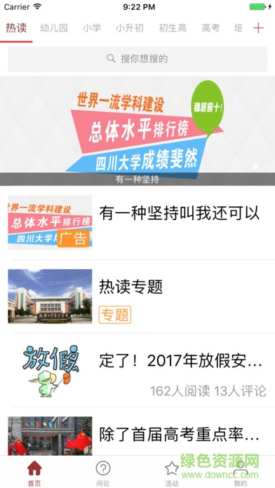 成都名校app是一款手机提供成都学校信息的软件,为用户提供最新最新的学校信息,让用户能轻松掌握自己想要知道的信息。用户有了这款软件就可以轻松了解每一所高校的具体信息,有利于用户为自己选择合适的院校。有需要的朋友可以来绿色资源网下载。