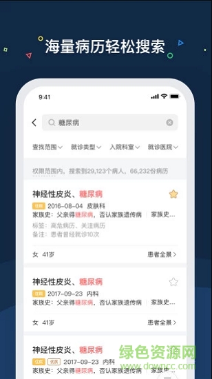医渡云app安卓版是一款医生在线查询病人病例,患者管理的软件,医生可以在这里随时查询自己病人的资料以及病史,方便更准确的对症下药。有需要的用户到绿色资源网下载吧!
