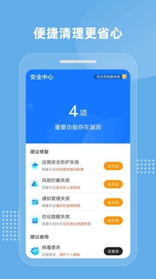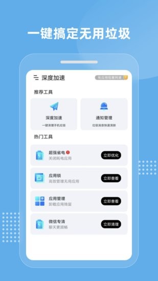 扫除手机屏障、释放内存空间,手机垃圾一键清除。