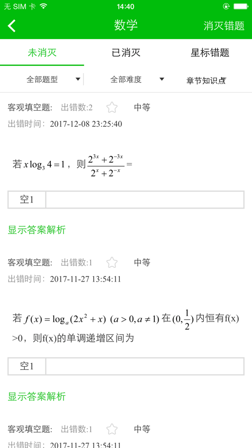 3.错题可以分三部分:未消灭错题、标星错题、已消灭错题。