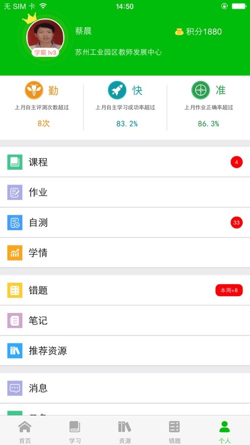 4.我的错题:显示本周的所有错题,点击【错题】跳转到错题页面。
