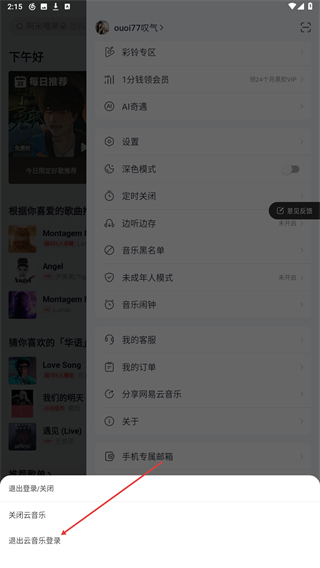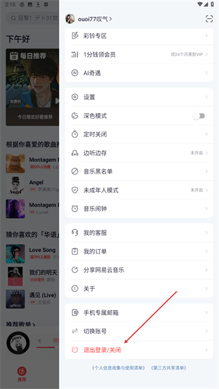 3、在弹出的选项中,点击退出云音乐登录的按钮即可退出成功。