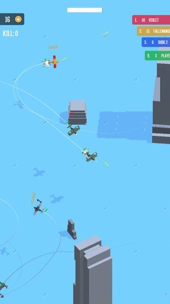 空战大作战有着全新风格的画面,整个游戏略显小清新,尽管以飞行射击为核心,但是难度并不是很大,操作上十分简单,每一局将有多个飞机在这里与你竞技,趣味的io模式能够带来更多欢乐,在倒计时结束后玩家需要保持第一名才能获得奖励。