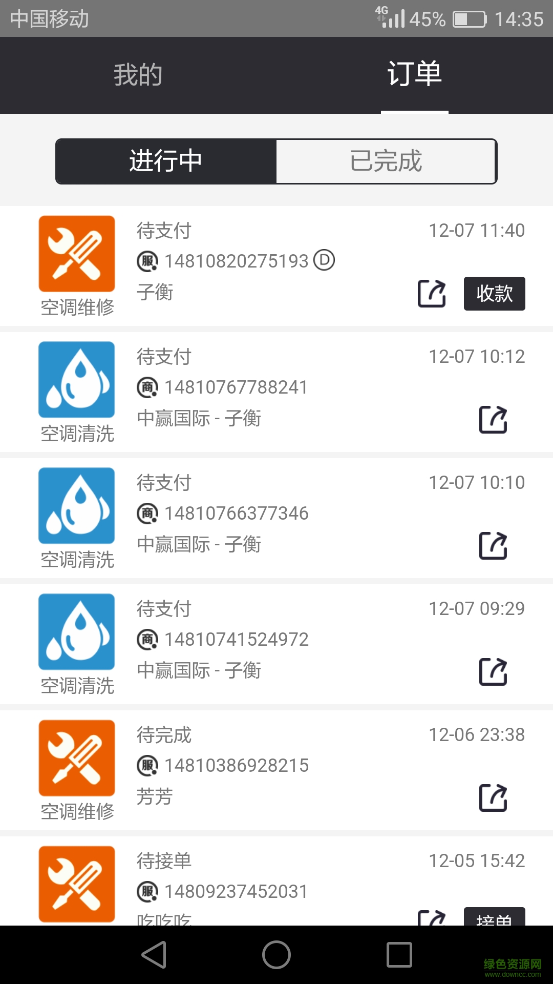 2、在小空技师app上服务商可指派订单的服务工程师,